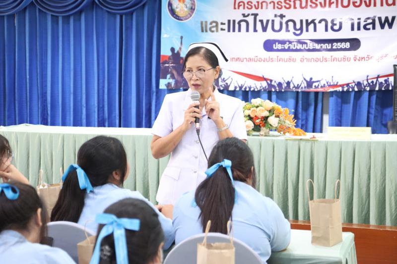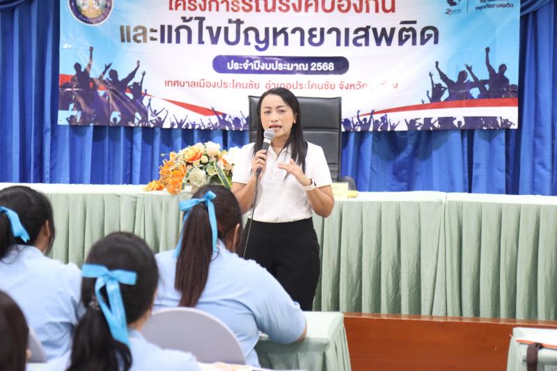description วันที่ 23 มิถุนายน 2568 นายฉัตรชัย ดุจจานุทัศน์ รองนายกเทศมนตรีเมืองประโคนชัย เป็นประธานในพิธีเปิดโครงการรณรงค์ป้องกันและแก้ไขปัญหายาเสพติด ประจำปีงบประมาณ 2568 ณ ห้องประชุมลีลาวดี เทศบาลเมืองประโคนชัย โดยมีวิทยากร นางขวัญเนตร ศรีเสมอ ตำแหน่ง เภสัชกรชำนาญการพิเศษ โรงพยาบาลประโคนชัย พร้อมทั้ง นางสาวนงนุช หลอมประโคน ตำแหน่ง พยาบาลวิชาชีพชำนาญการพิเศษ เป็นวิทยากร ให้ความรู้ในเรื่องโทษและพิษภัย ยาเสพติดประเภทต่างๆ เนื่องในวันต่อต้านยาเสพติดโลก (26 มิถุนายน) ประจำปี 2568 person admin