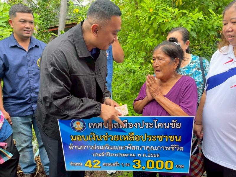 description เมื่อวันที่ 26 กันยายน 2568 นายทวีรัตน์ หรีกประโคน รองนายกเทศมนตรีเมืองประโคนชัย พร้อมด้วยสมาชิกสภาเทศบาล และเจ้าหน้าที่กองสวัสดิการสังคม ลงพื้นที่มอบเงินช่วยเหลือประชาชนด้านการส่งเสริมและพัฒนาคุณภาพชีวิตประจำปีงบประมาณ พ.ศ. 2568 จำนวน 42 ครอบครัวๆละ 3,000 บาท เพื่อส่งเสริมการเข้าถึงปัจจัยพื้นฐานพัฒนาศักยภาพและ บรรเทาความเดือดร้อนให้ความช่วยเหลือแก่ประชาชนกลุ่มเปราะบางในเขตพื้นที่เทศบาลเมืองประโคนชัย person admin