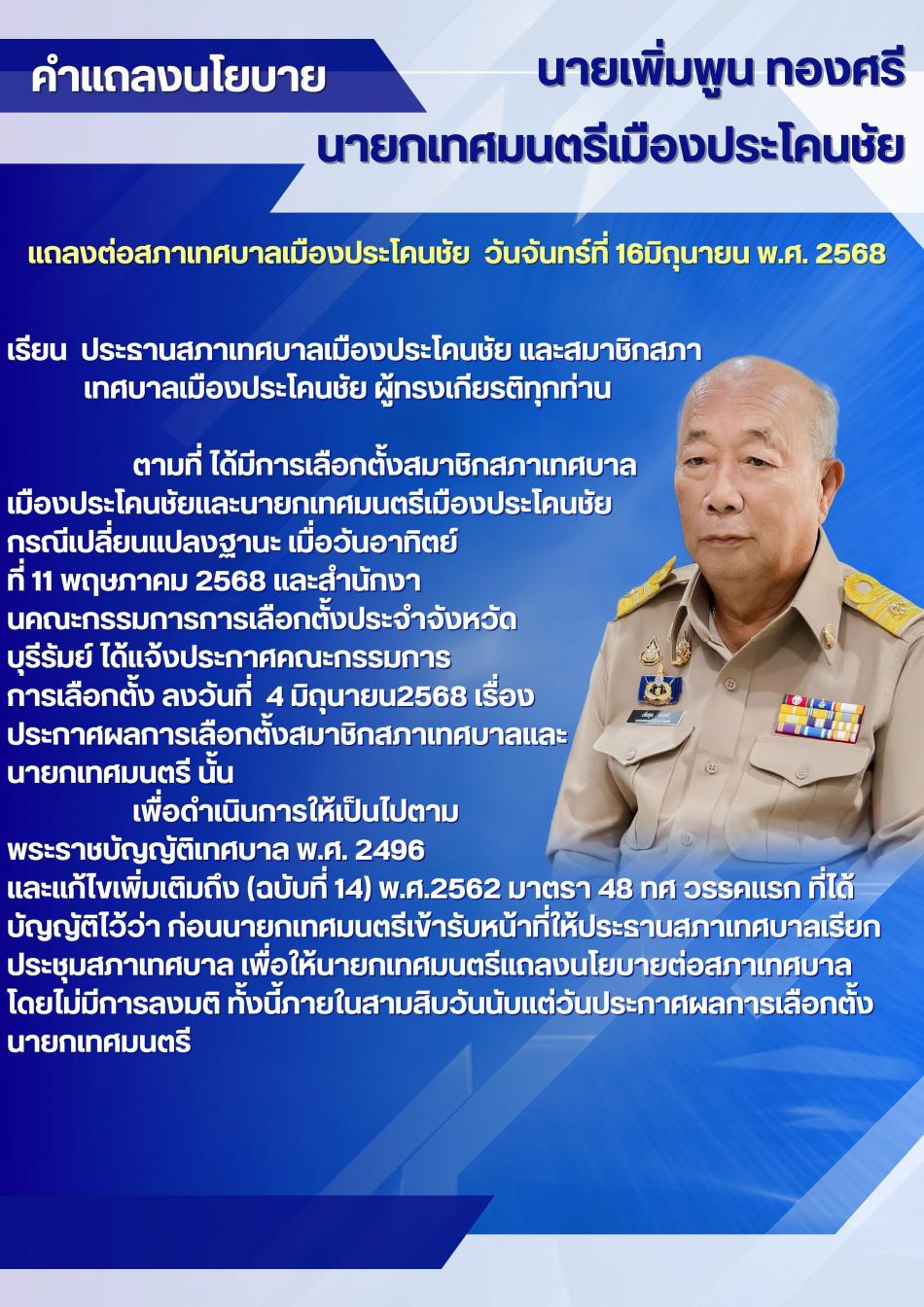 ยินดีต้อนรับ เข้าสู่เว็บไซต์ เทศบาลเมืองประโคนชัย อำเภอประโคนชัย จังหวัดบุรีรัมย์